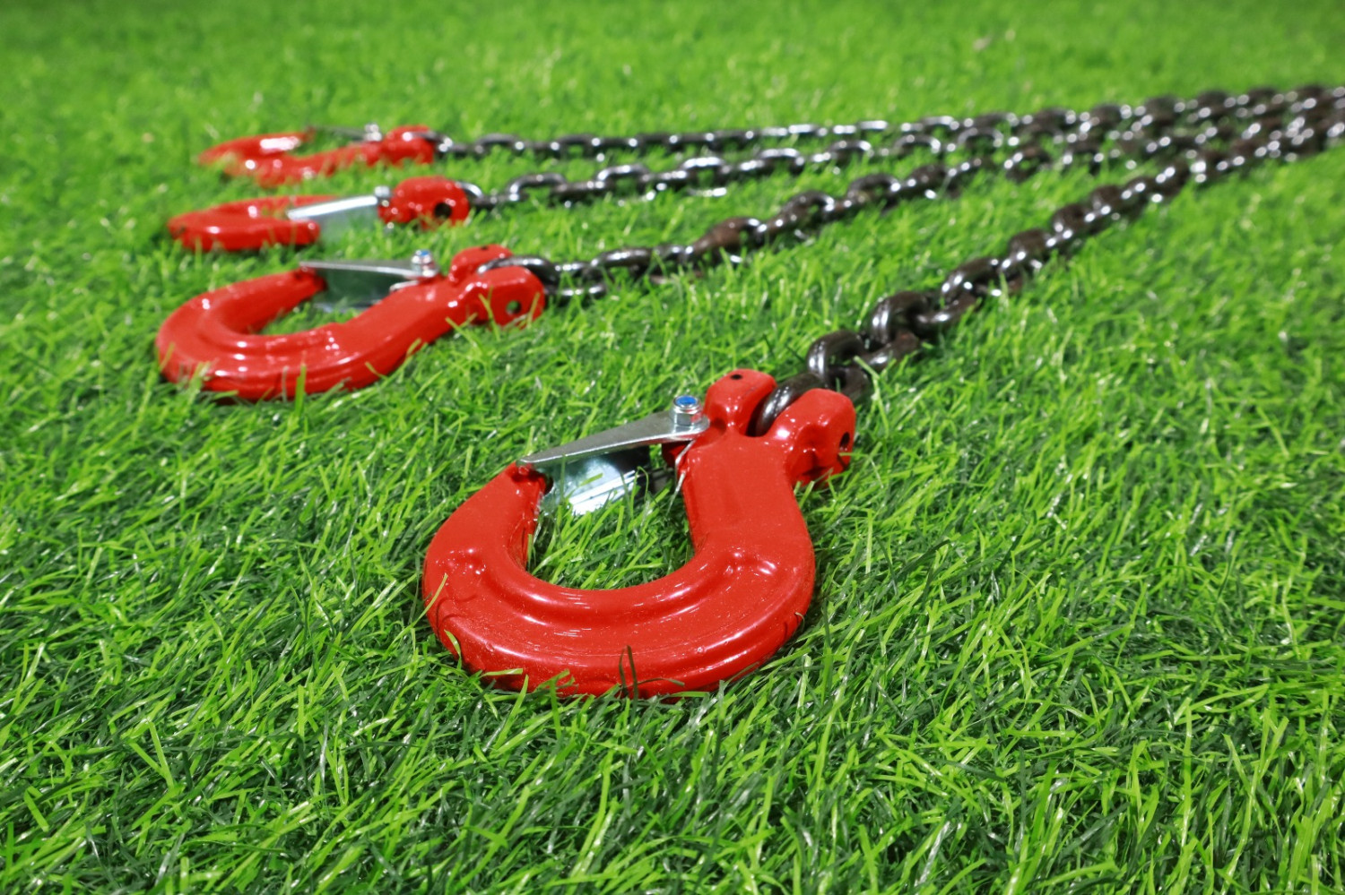 Manufactured from high-strength alloy steel, the chain sling offers excellent resistance to wear, impact, and deformation. The master link at the top allows easy connection to cranes or hoists, while the four safety hooks with latches ensure secure attachment to the load during lifting operations.
