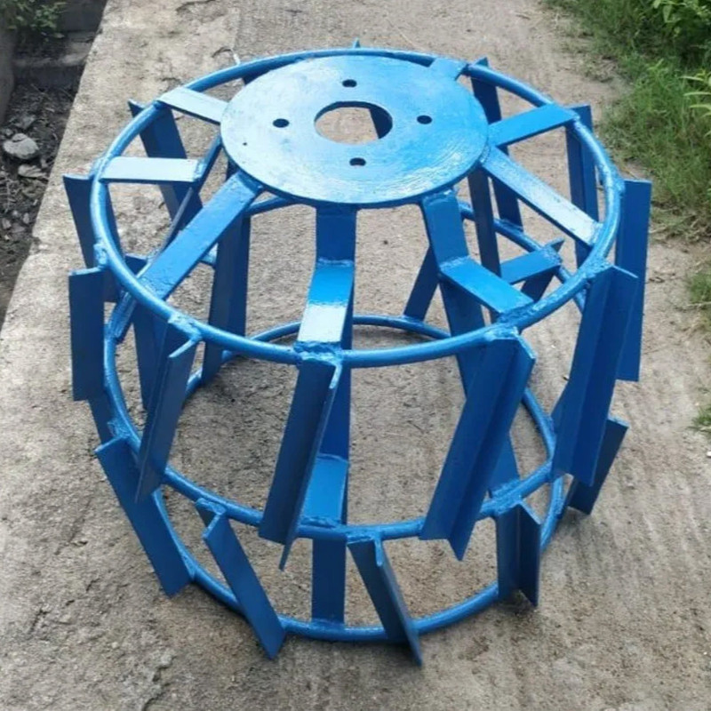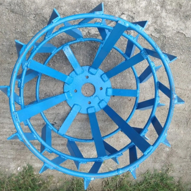 Built with a strong cage-type steel wheel structure, this attachment provides excellent grip, prevents wheel slippage, and ensures smooth machine movement even in waterlogged conditions. It helps maintain consistent working depth and improves overall tilling efficiency.